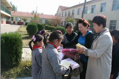 10月26日上午,在胶南市慈善总会工作人员陪同下,受“善晶助学基金”建立者黄永焱先生的委托,王宝英女士来到胶南市大村镇市美小学看望因车祸失去双亲的邓云洁、邓云谨、邓云珂三胞胎姐妹,为她们送去了助学金和学习用品,并结成帮扶对子。