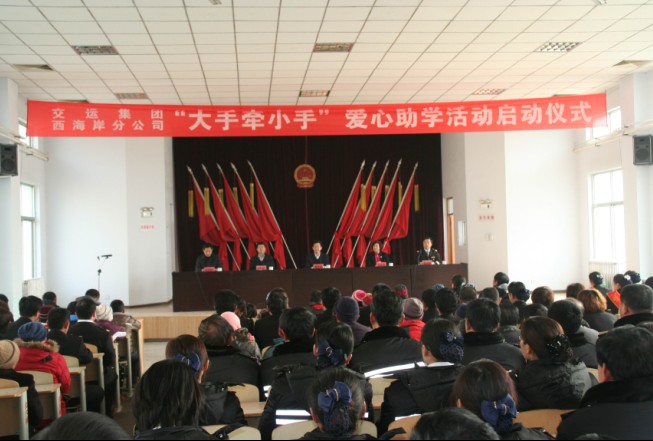 1月25日上午,胶南市慈善总会在海青镇政府礼堂举行了交运集团西海岸公司“大手牵小手”爱心助学活动启动仪式。